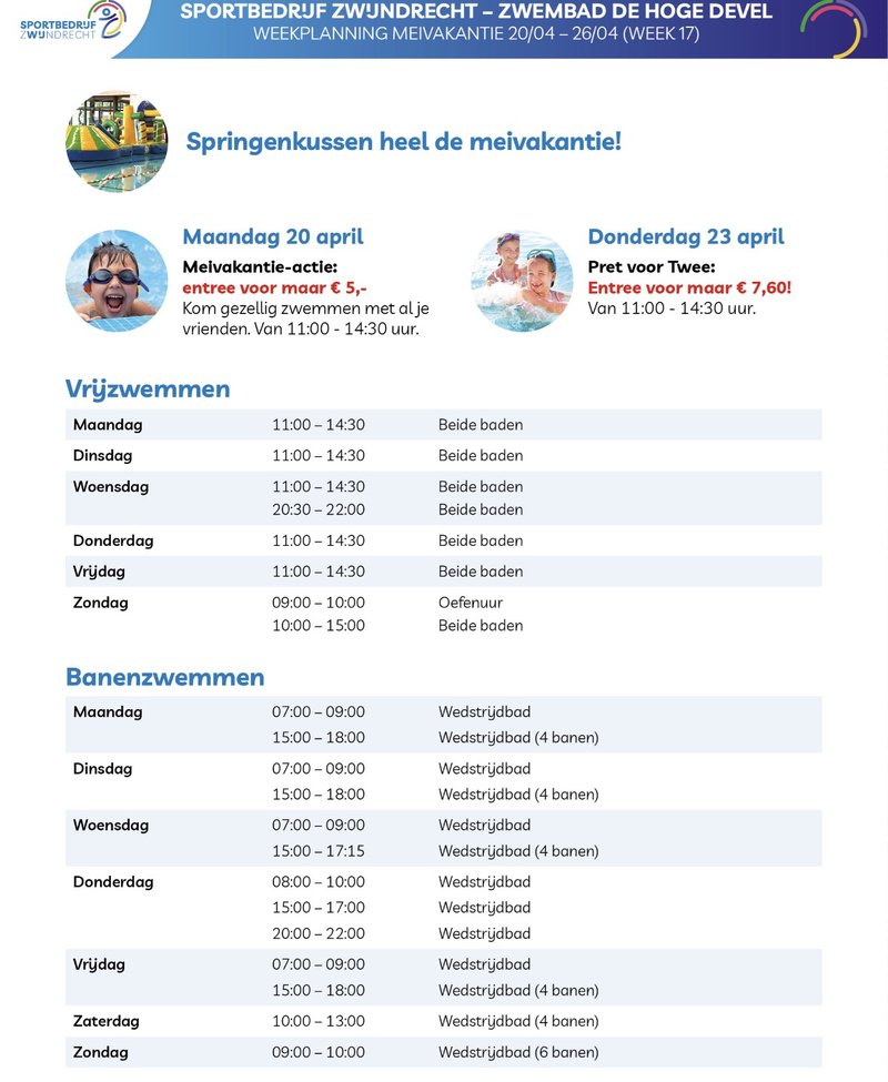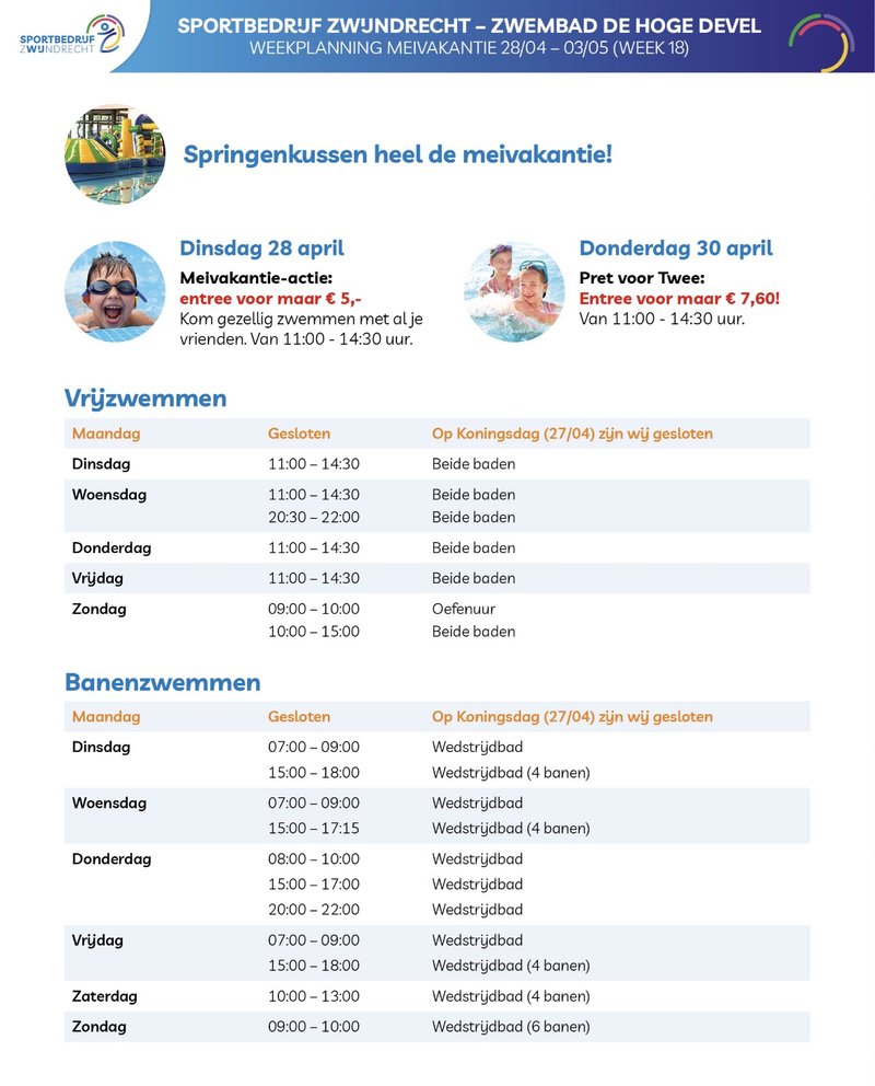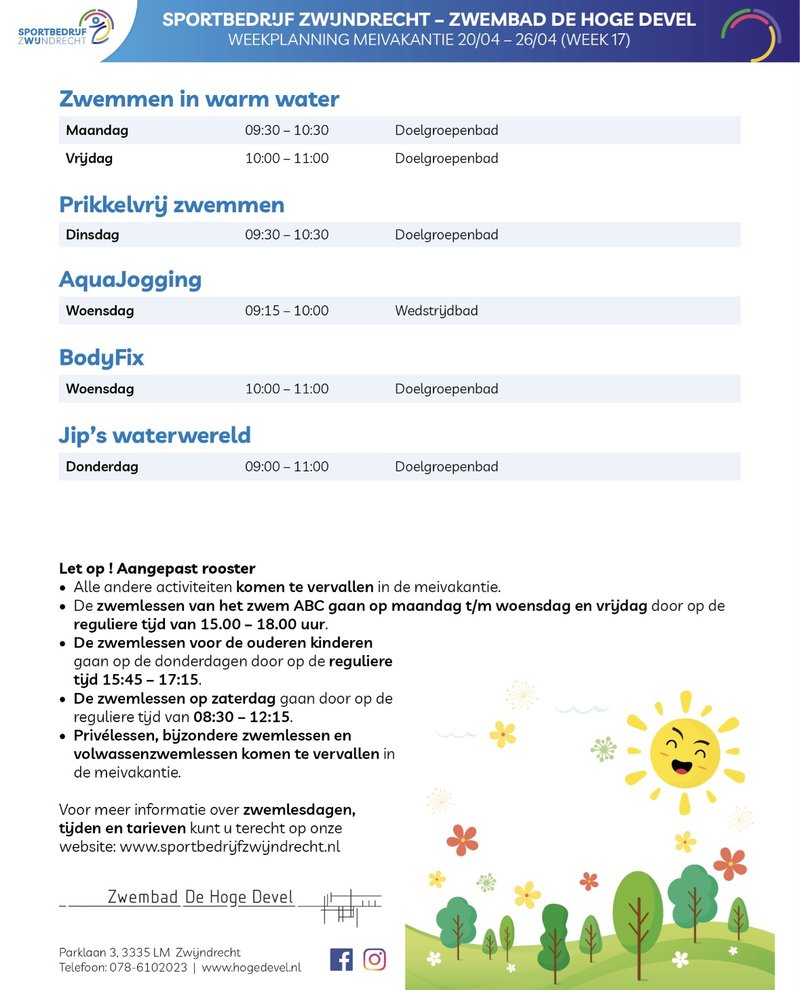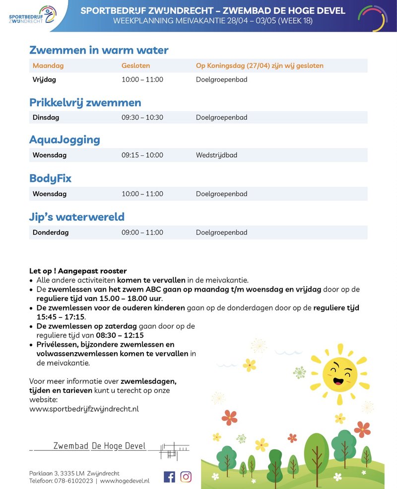 Vanaf maandag 20 april t/m 3 mei hebben een speciaal aangepast rooster, plus hele toffe activiteiten. Bijgaand het overzicht aangepast rooster plus alle activiteiten.